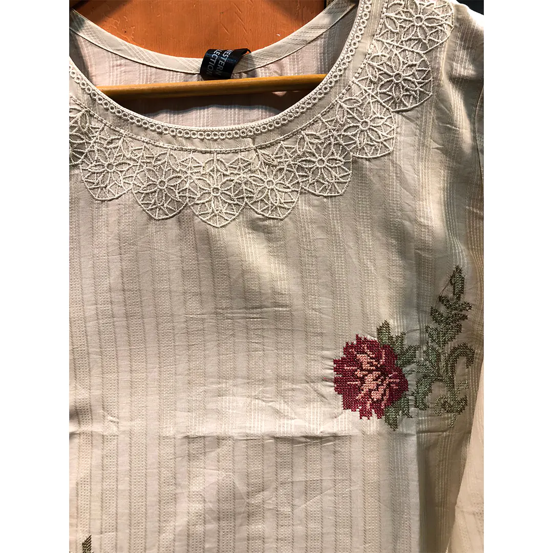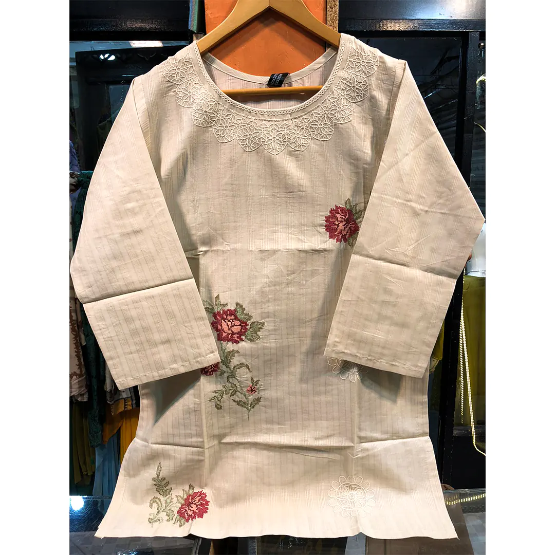 The light-skin color gives this kurta a refined and graceful look, while the delicate embroidery adds a touch of traditional artistry with modern style. Whether you are looking for a casual embroidered cotton kurti for daily wear, a stylish kurta for office meetings, or a chic piece for semi-formal gatherings, this top serves every purpose effortlessly.