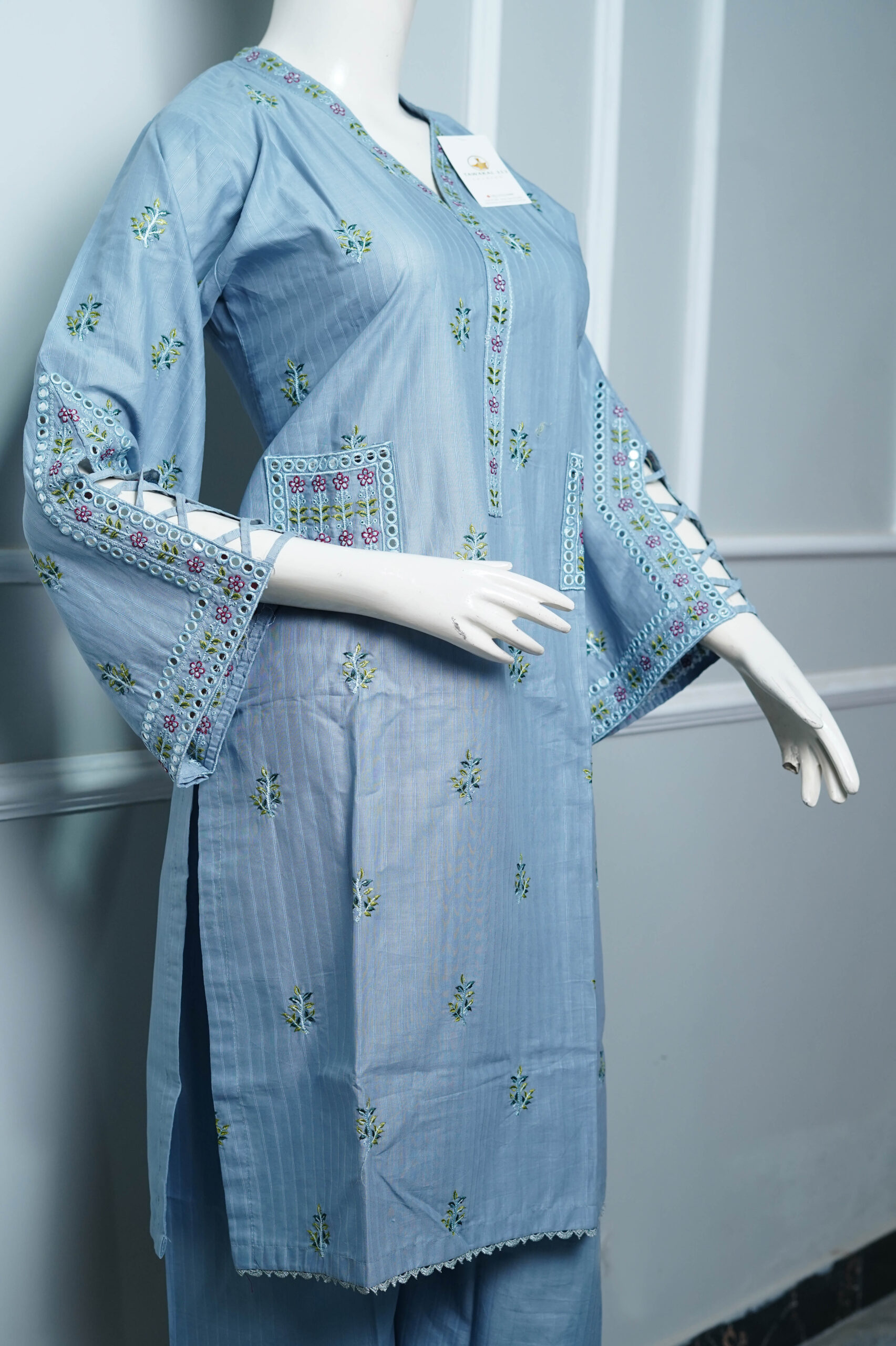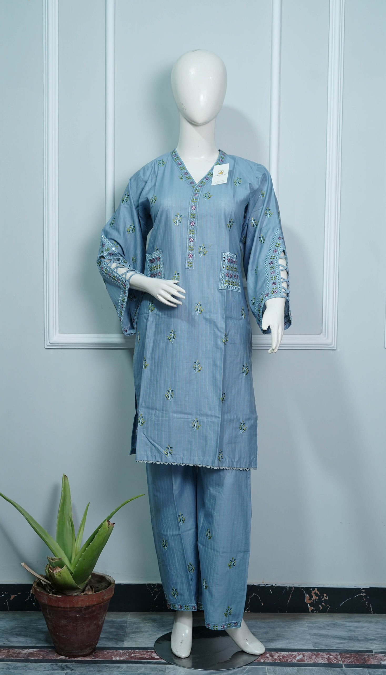 The Kheesa Fadesky – 2PC Stitched Cotton Suit for Women from Tawakal313Fashion is a stylish yet comfortable choice for women who value elegance in everyday wear. Made with high-quality cotton fabric, this 2 piece stitched cotton dress includes a finely stitched shirt and trousers in a refreshing fadesky color.