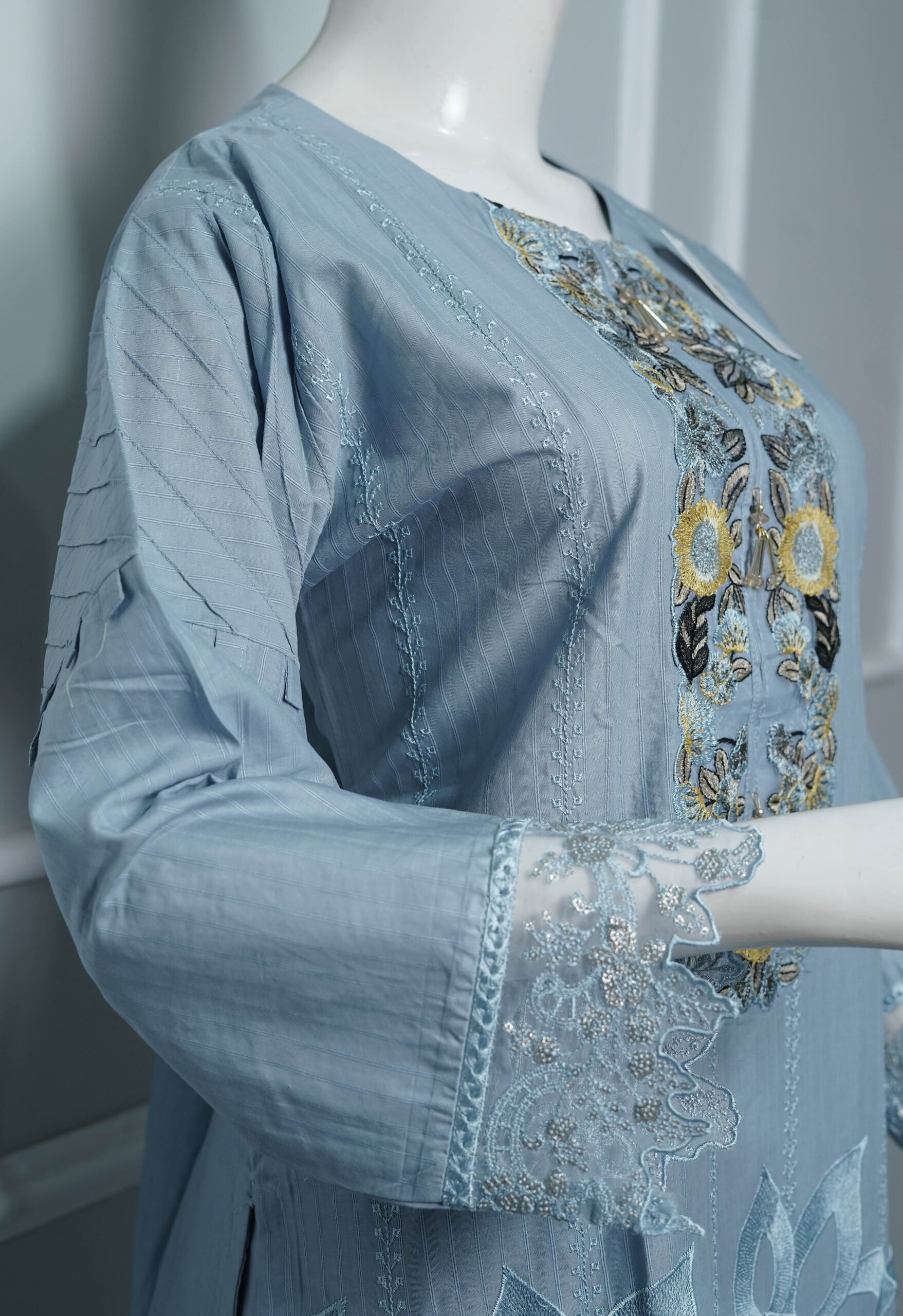 Crafted with premium cotton fabric, it provides breathability and durability, ensuring comfort for all-day wear. Its soothing sky-inspired color makes it ideal for casual outings, office attire, or semi-formal gatherings, adding a graceful touch to your everyday style.