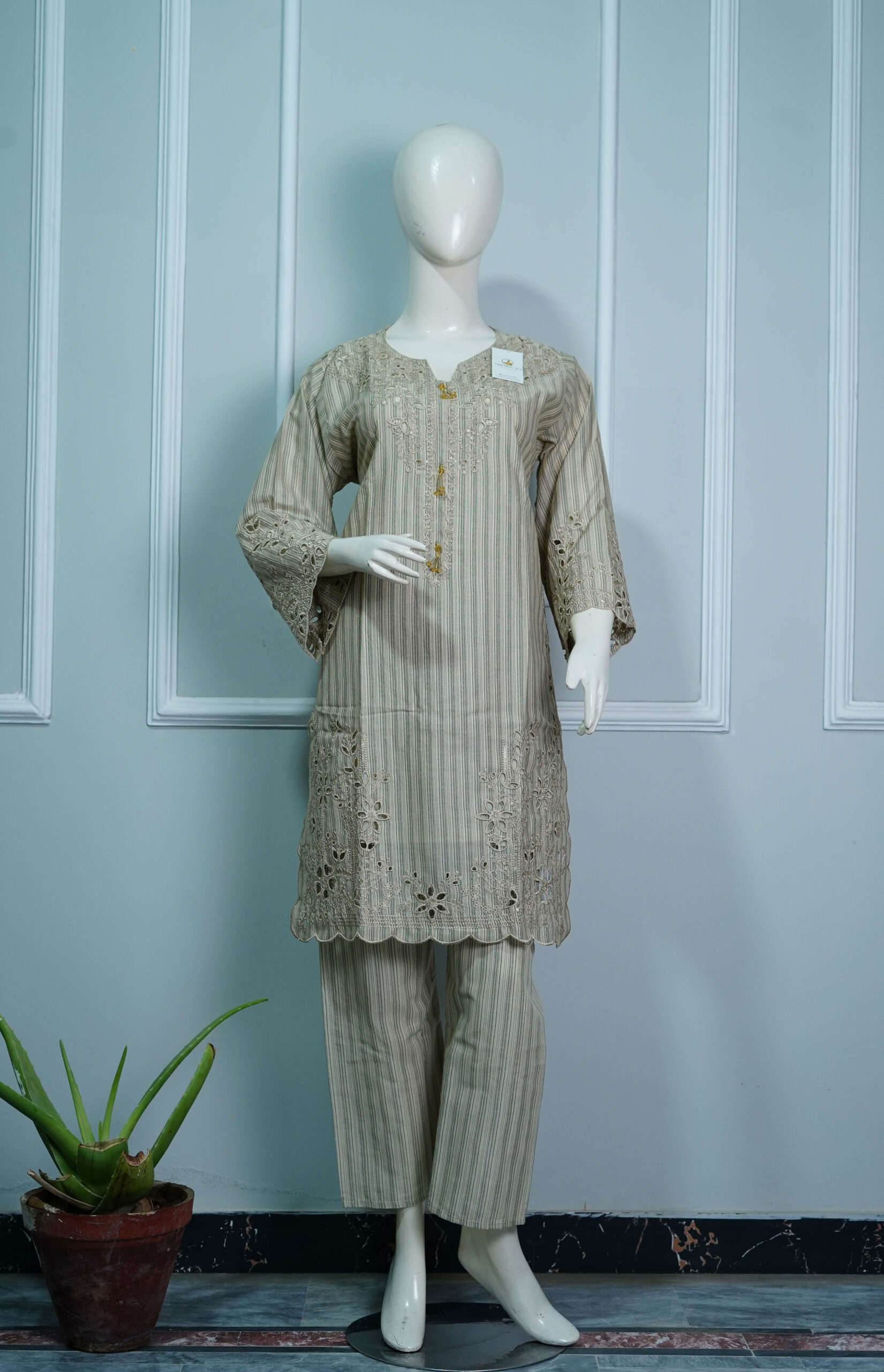 The Leesa Woodline – 2PC Stitched Cotton Suit for Women by Tawakal313Fashion brings together comfort and elegance in a timeless design. Featuring a stylish shirt with matching trousers in a subtle woodline shade, this outfit is perfect for women who prefer refined yet simple fashion.