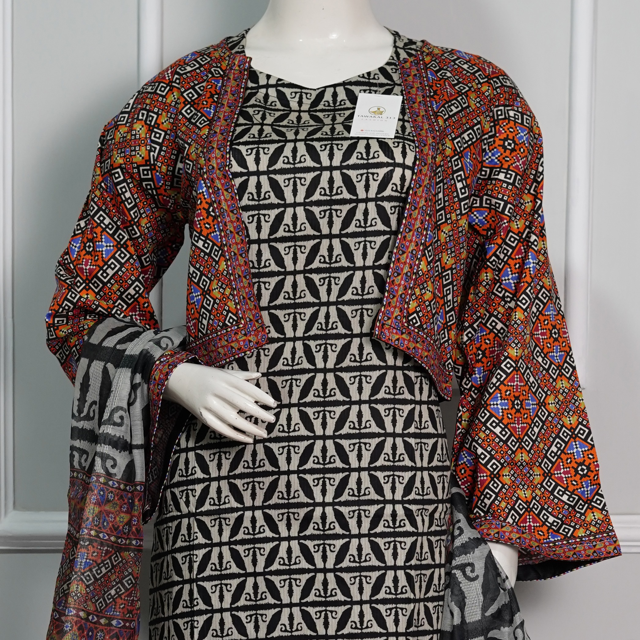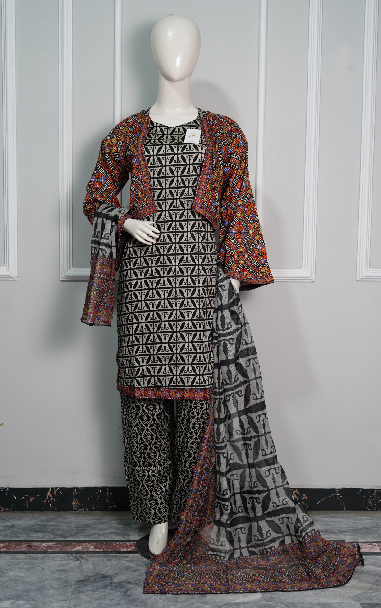 Proudly Made in Pakistan, this 3PC lawn maxi dress reflects fine craftsmanship and a timeless style, making it a must-have addition to your wardrobe.